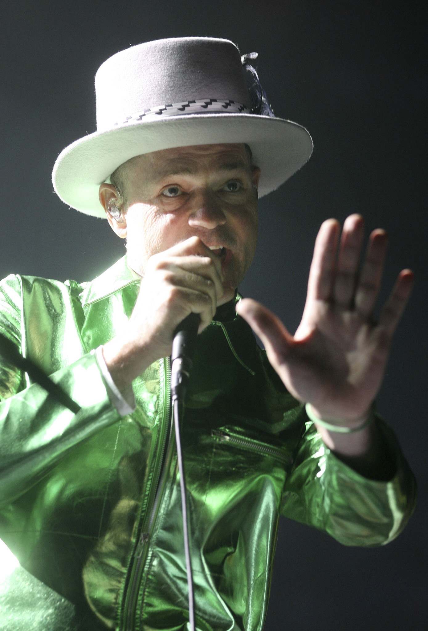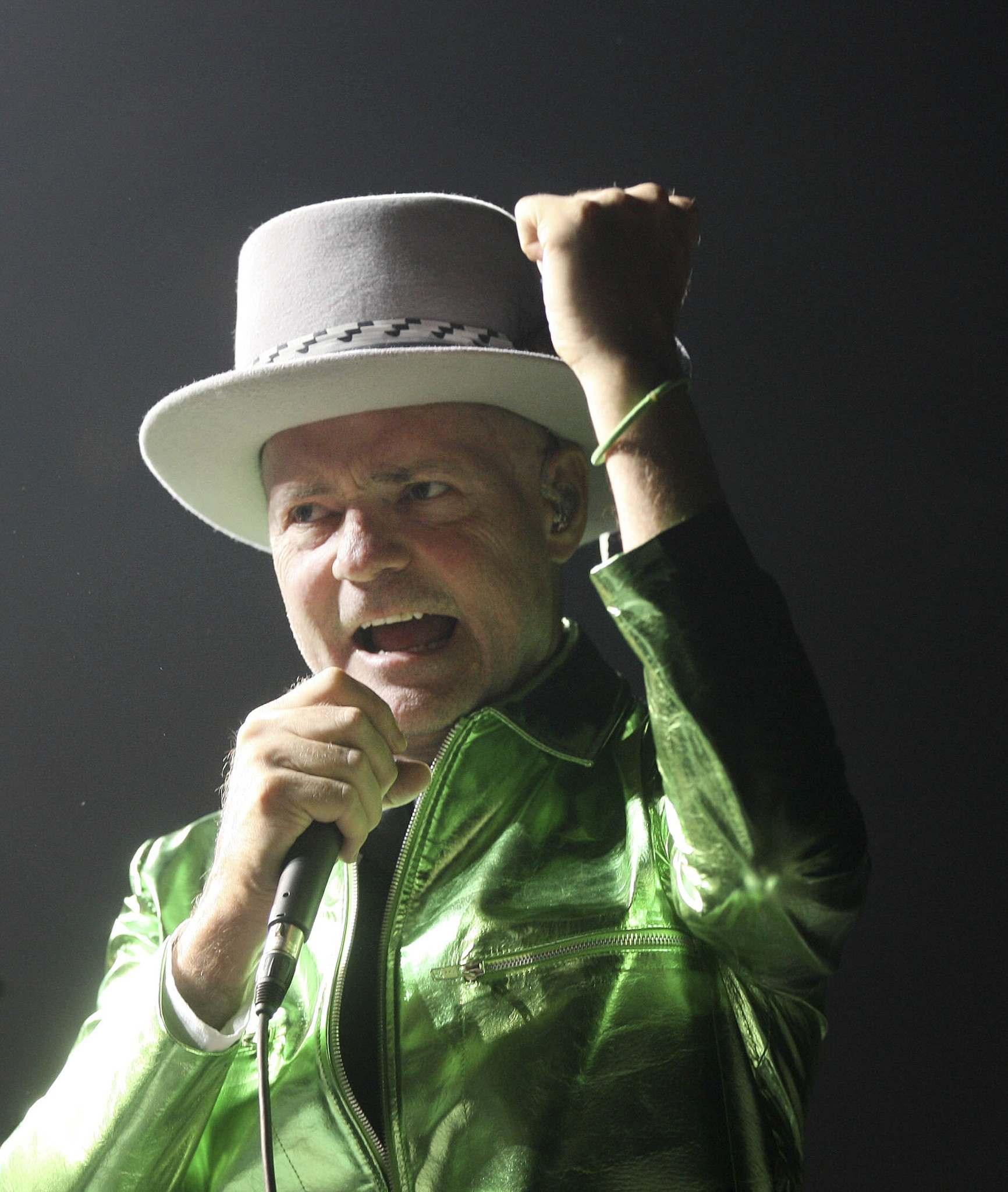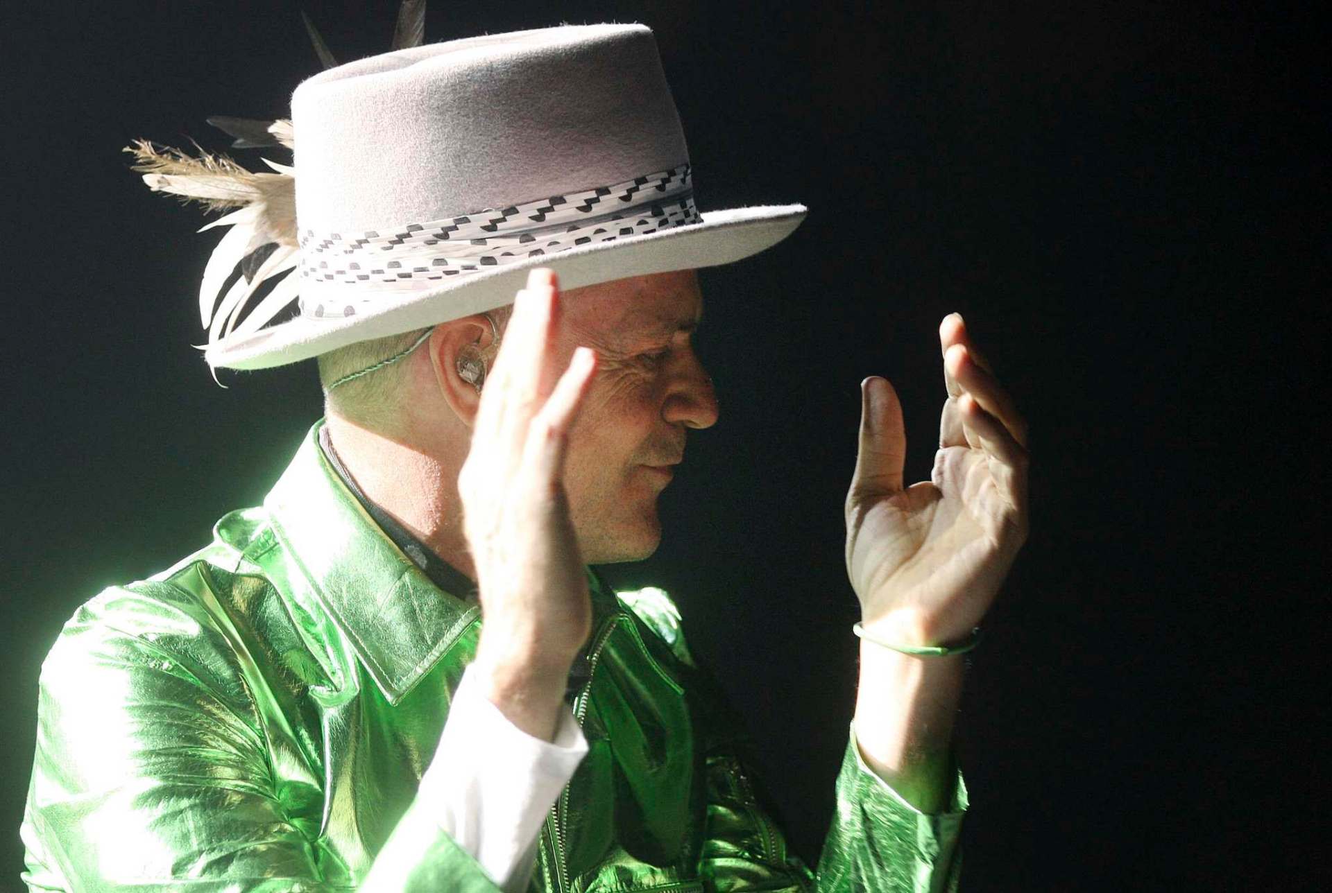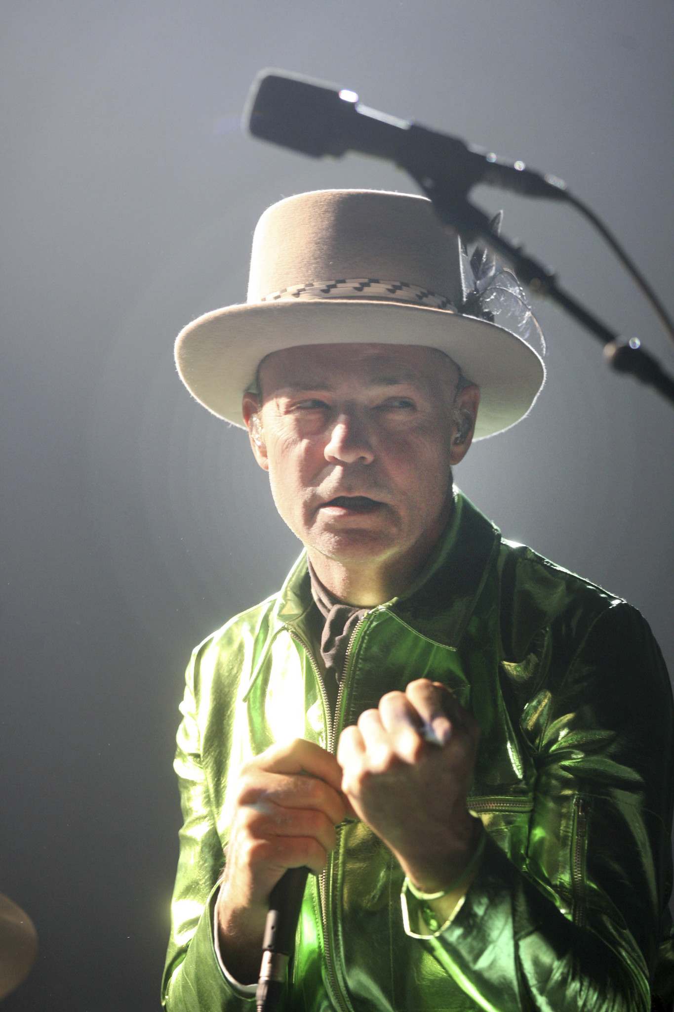 At 8:30 p.m. on the nose, Gord Sinclair, Rob Baker, Paul Langlois, Johnny Fay and Downie were greeted by a standing ovation. Downie, dressed in a metallic lime-green suit, wasted no time throwing out some of his signature dance moves, his erratic limbs popping and locking as he and his bandmates kicked off the show with At the Hundreth Meridian.
