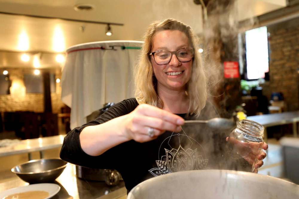 “I have a notebook I jot ideas down in all the time,” she says. “I just got back from Vancouver, where I tried a white peony kombucha that was absolutely out of this world. Tons of people have asked about mango, so that’s one (flavour) I’m definitely working on. Black currant and elderflower is another, plus I’m thinking about one with no flavouring added, just a mix of fermented, organic green and black tea. I swear, some of the best kombucha I drank during my trip to B.C. was tea on its own, with nothing extra.”