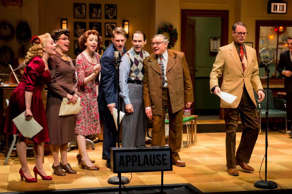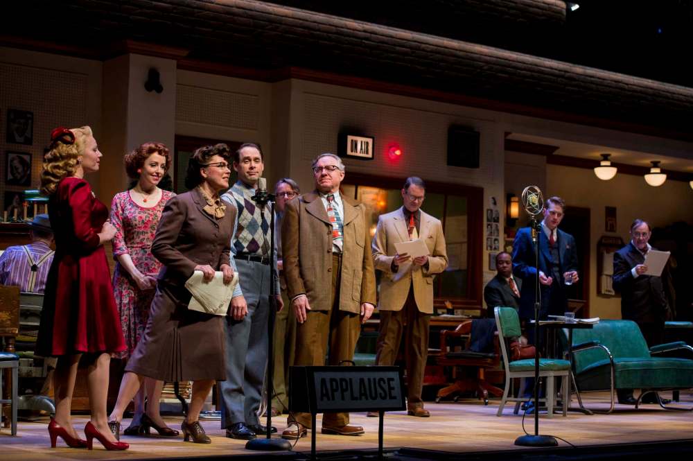 The Royal MTC show’s director, Steven Schipper, goes further, presenting the radio show as the product of an old-timey Winnipeg station, CMTC, circa 1947. It’s here, a troupe of 10 actors — the “Red River Radio Players” — perform the drama, scripts in hand, along with a keyboard player (Danny Carroll) and a foley artist (John Gzowski) doing live music and sound effects.