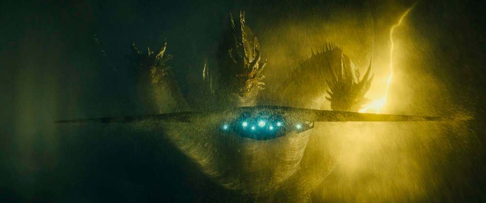 The massive monster action draws on the trappings of the sci-fi sublime — including vaguely religious choral music — but Rodan, Mothra and the three-headed King Ghidorah don’t really register as anything other than really, really big.
