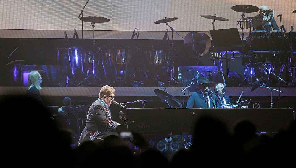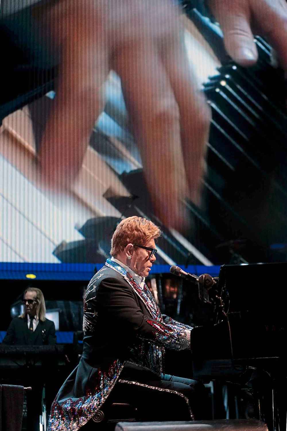 A few songs in, John took a break to stroll about the stage waving to fans and absorbing their unending applause; similar pause-and-absorb moments happened a few times throughout the night, the affection fuelling him through his more than 165-minute set. When he took his seat again, John spent a minute or two explaining his songwriting process with longtime collaborator Bernie Taupin before performing the seven-minute epic Indian Sunset.