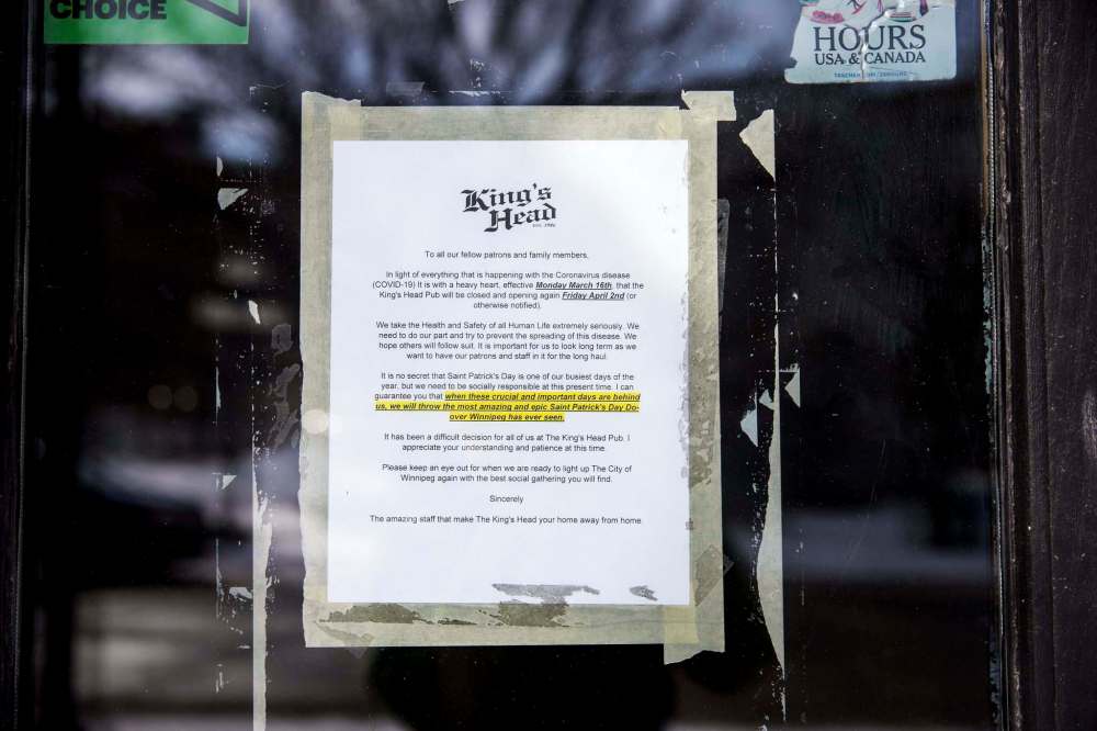 Chris Graves, owner of the King’s Head Pub, announced Monday he was closing the Exchange District watering hole until April 2 as a public health precaution; he is urging other local establishments to do the same.