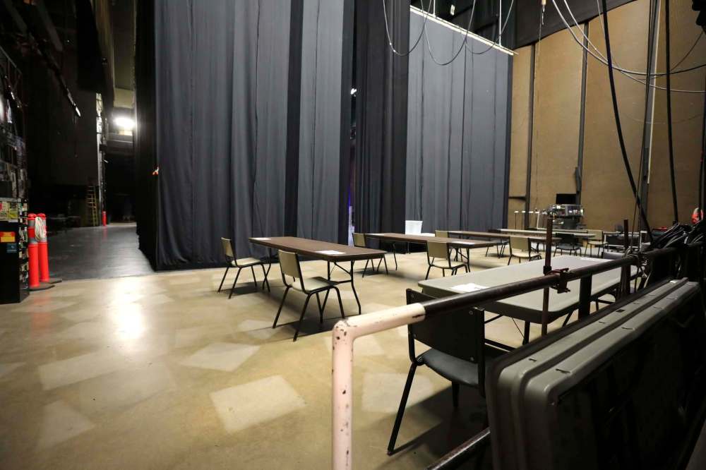 Physically distanced seating has been created for performers waiting in the wings before the show.