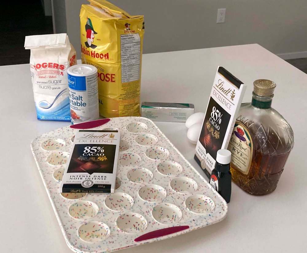 This is an easy recipe, but dark chocolate doesn’t melt as easily as milk chocolate, so stir it well when melting to ensure it’s fully melted. The dark chocolate and rye combine to create a smoky and spicy flavour. Using a mini-muffin pan, the recipe makes about 35 to 40 brownies.