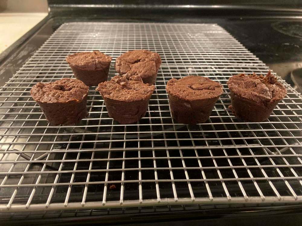 - Divide brownie batter between greased muffin cups. Smooth tops with an offset spatula. Bake until a cake tester inserted into centre of a brownie comes out clean (about 15 to 20 minutes).
