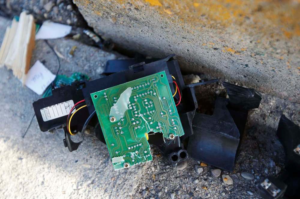 In one instance, at the corner of MacGregor Street and Mountain Avenue, two pay phones back to back on a pole had been smashed open, presumably for the coins inside. Bits of circuit board and fractured plastic were scattered over the cement below.