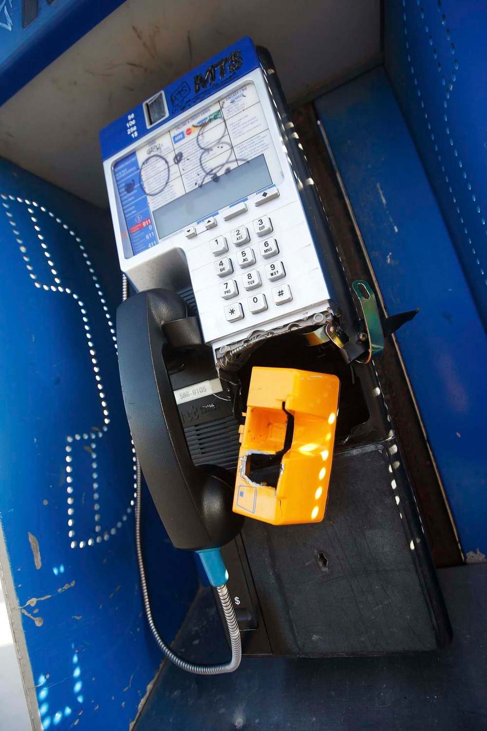 A spokesperson for Bell MTS said that of approximately 2,500 pay phones in Manitoba, about half are in Winnipeg. In recent years, “pay phone use has declined significantly,” but the company has no plans to discontinue service, said the spokesperson. However, pay phone vandalism is a “significant issue”; at any given time, multiple pay phones are on the repair schedule, the spokesperson said. Phones with repeated problems, or phones business owners request be removed, may be eliminated altogether.