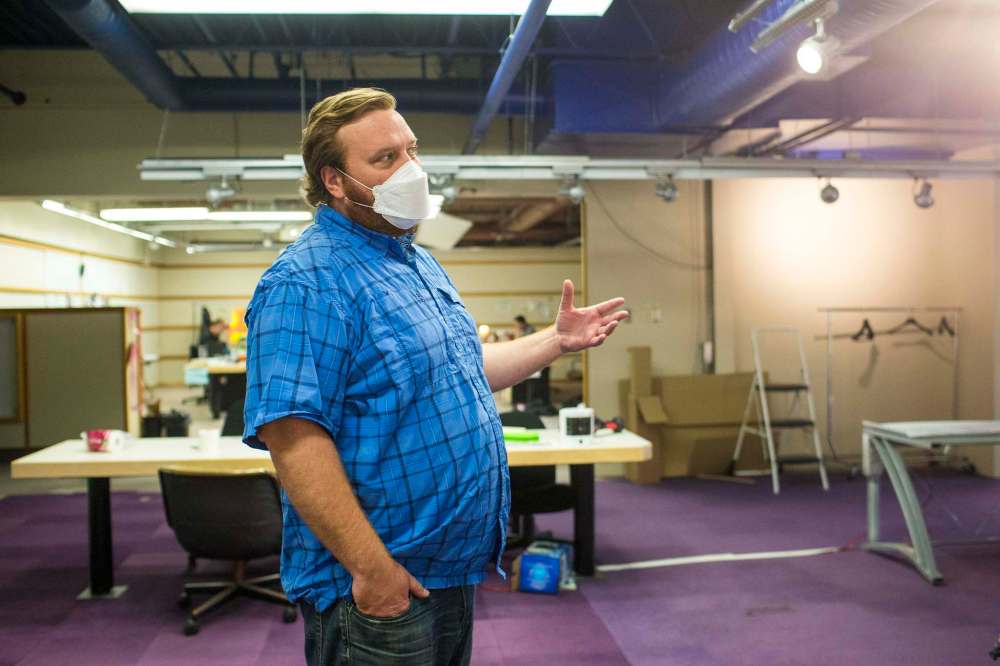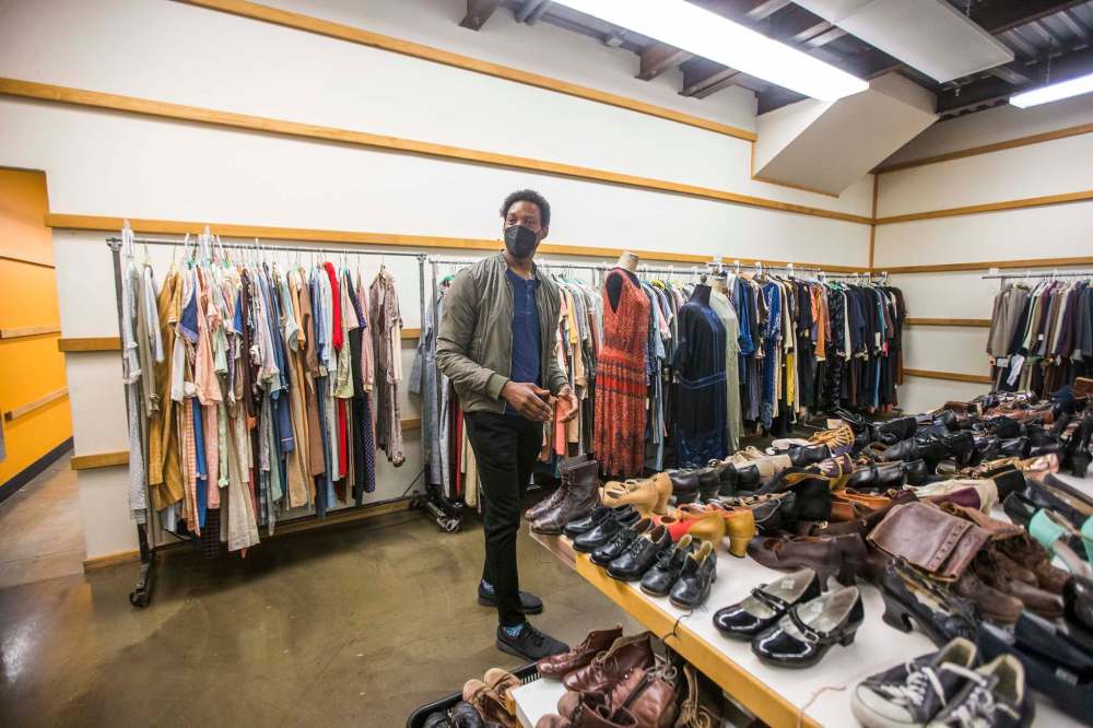 Arnold Pinnock gives a tour of the costume department inside the The Porter production office in the North End.