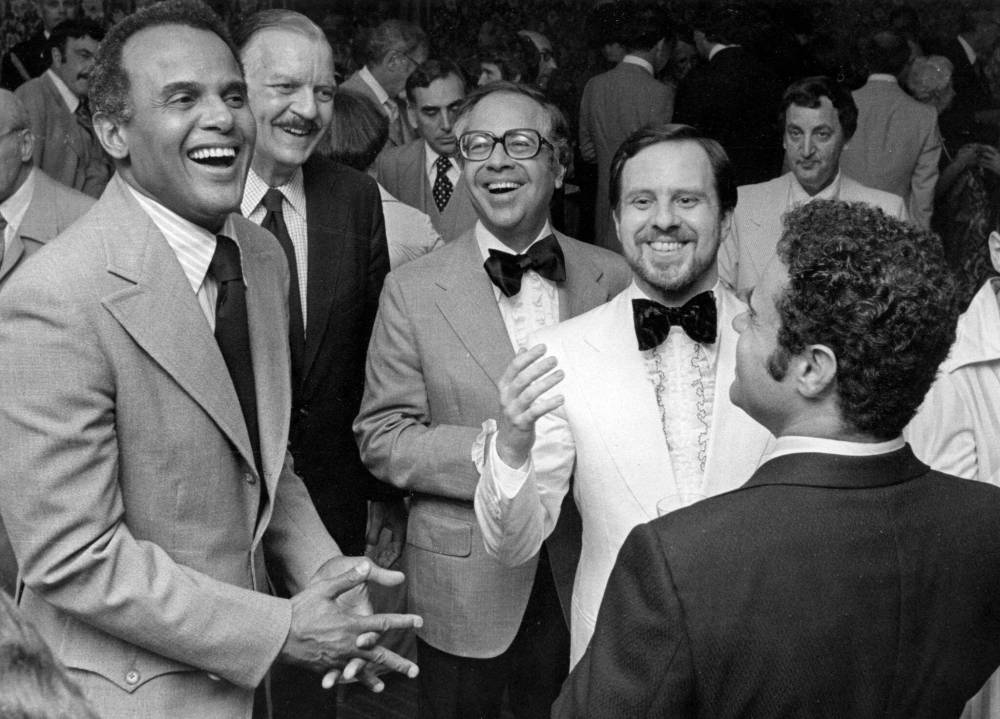 JIM HAGGARTY / WINNIPEG FREE PRESS FILES Harry Belafonte with Winnipeg Symphony Orchestra conductor Piero Gamba, in white, at a WSO gala in 1977.