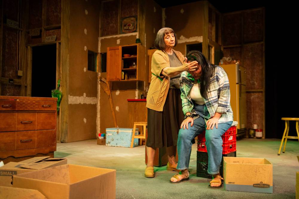 Oro’s revolving set, somehow both sparse and overflowing, extends to the outer limits of the Cherry Karpyshin Mainstage, nearly allowing the actors to enter the seating area and bringing their conflict strikingly close to the front row. With no risers, under Hazel Venzon’s direction, the three actors stand on equal ground as they trade verbal jabs and emotional uppercuts.