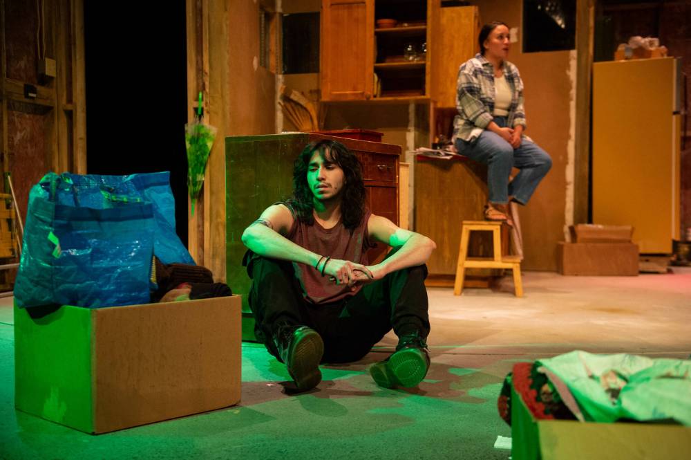 Zarrillo, a first-time solo playwright who uses they/them pronouns, has grand ambitions for this show as a metaphor for colonialism, inherited wealth and land ownership. In the playwright’s lengthy pre-show land acknowledgement (see sidebar), played over the mainstage sound system, they ask audience members to consider how and why they are able to live on Treaty 1 lands, acquired through conquest and unlawful colonial tactics.