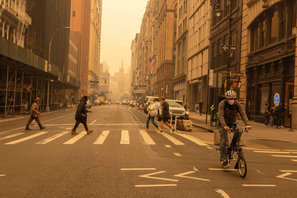 COVID-era masks are worn for the smoke of Canadian wildfires that darkened NYC skies.