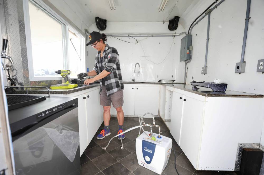 RUTH BONNEVILLE / WINNIPEG FREE PRESS Stephen Kang is in the process of retrofitting a trailer for his Prairie Solar Cafe food truck, which he hopes to get rolling by summer’s end.