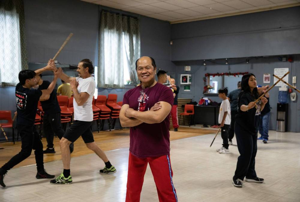 Dante Alambra, 72, at the Filipino Seniors Hall where he teaches sikaran and arnis
