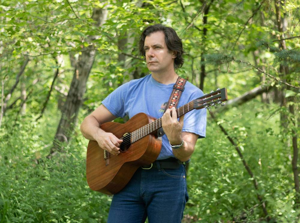 MIKE THIESSEN / WINNIPEG FREE PRESS Grant Davidson’s Chicago-style parlour guitar was gifted to him by a stranger two years ago.