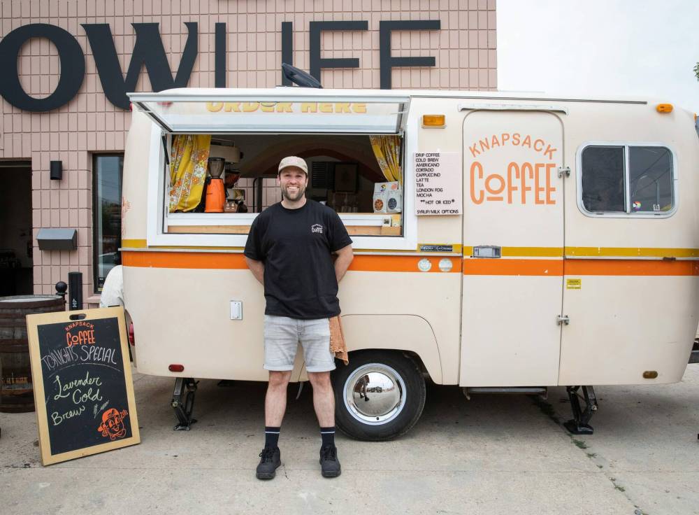 Quinton Anderson is Knapsack Coffee’s owner and head barista. The 36-year-old chuckles before responding to a chicken-or-egg, which-came-first query: the Boler, a lightweight, fibreglass contraption that was invented by Winnipegger Ray Olecko in 1968, or the notion of a café-on-wheels?