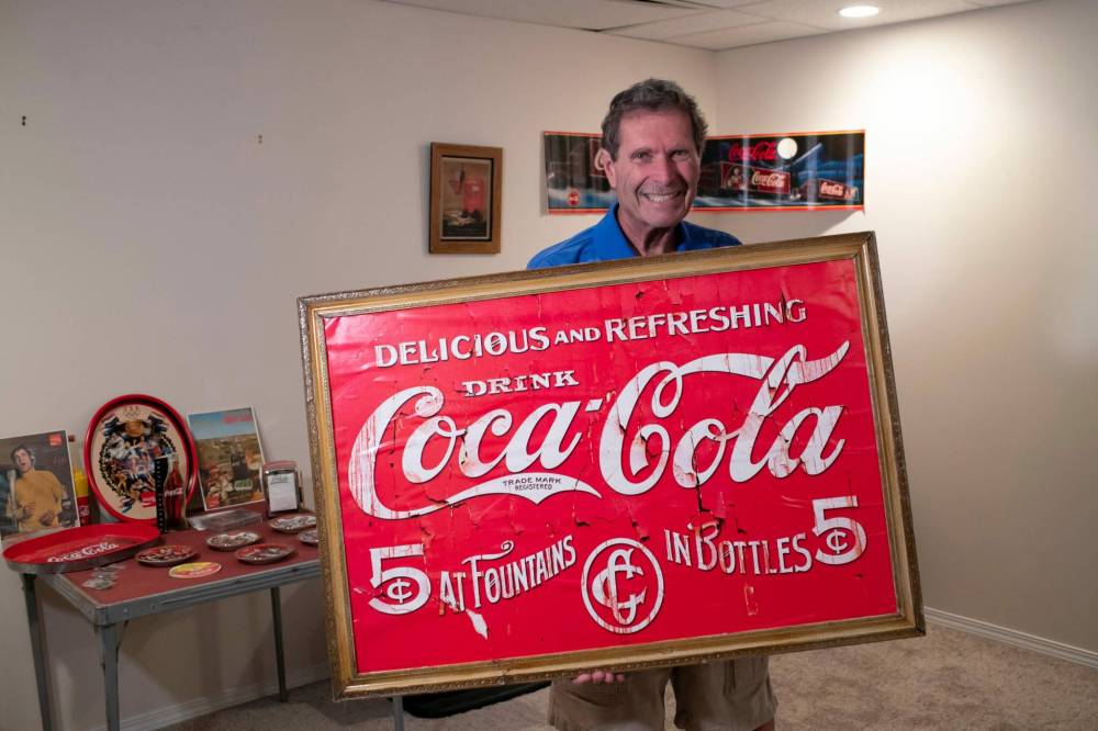“I remember Dad, who passed away 11 years ago, having all these great (Coke) ads and posters lining the walls, and when I think about the stuff he tossed out that’s now worth thousands of dollars, it almost keeps me up nights,” he says with a shrug.
