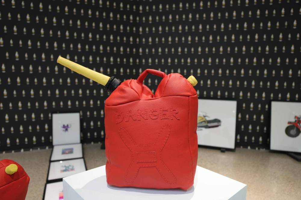 As one might expect in a show named for that beautiful and toxic skim of iridescence on a pool of gasoline, jerry cans figure prominently.