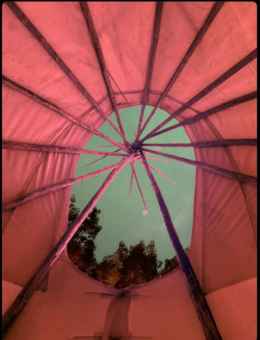 Instead of animal hide, Isaac has used repurposed sails and tarps to cover the structure, which is supported by the Winnipeg Arts Council. The materials are symbolic of the historic seafaring migration of immigrants to Winnipeg and the modern tent cities constructed by homeless residents.