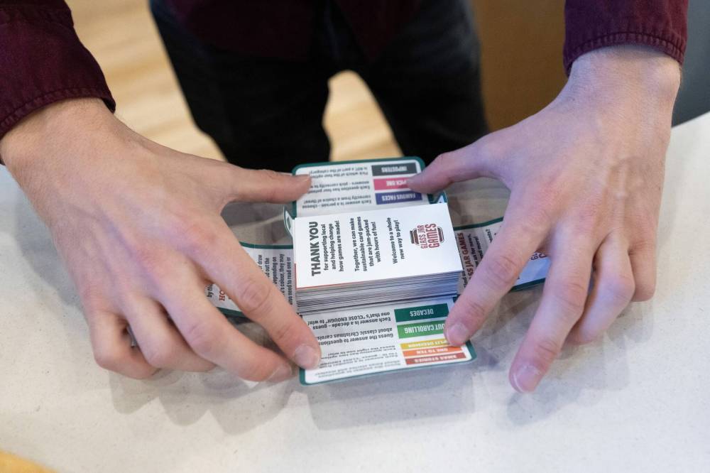Wielgosz, who has co-written and directed three plays for the Winnipeg Fringe Theatre Festival, and Plumridge, and is currently a brand trainer at Activate Games, an interactive gaming facility with two locations in the city, received the “kick in the pants” they needed to launch Glass Jar Games, after Plumridge purchased a printer capable of handling the uncoated, recyclable style of paper they’d chosen for their game cards.