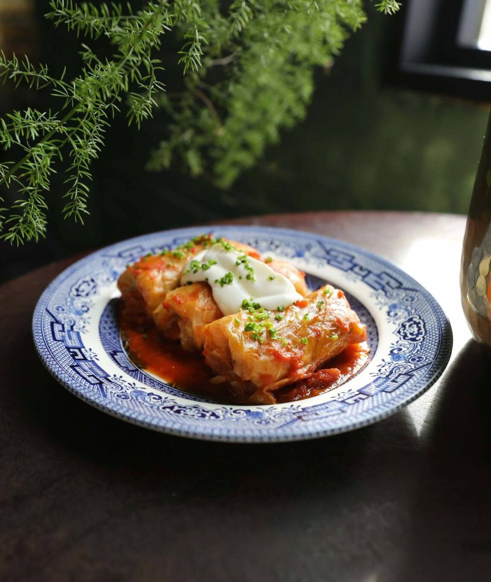 A favourite is his paternal grandmother Effie’s cabbage rolls, filled with bacon and rice. It’s a recipe he uses to this day, although the rice is no longer from a packet and his tomato sauce doesn’t come out of a bottle.