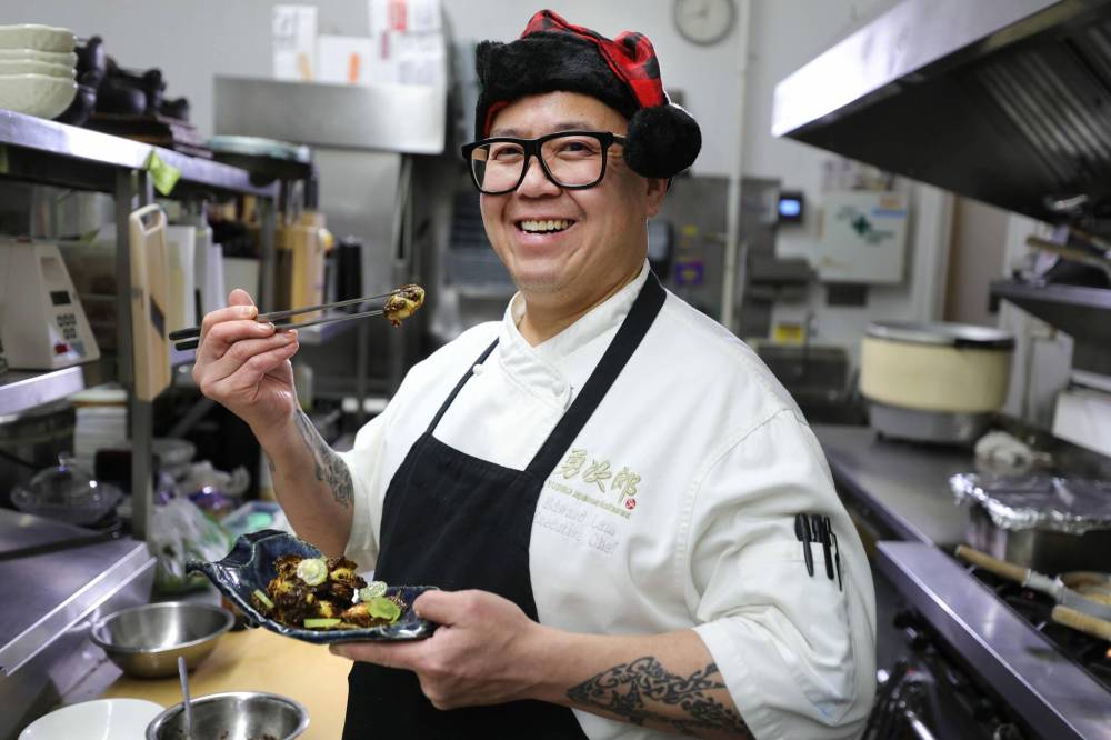 RUTH BONNEVILLE / WINNIPEG FREE PRESS Edward Lam of Yujiro makes fish-sauce Brussel Sprouts with fish sauce and lemon oil, garnished with sliced green grapes.