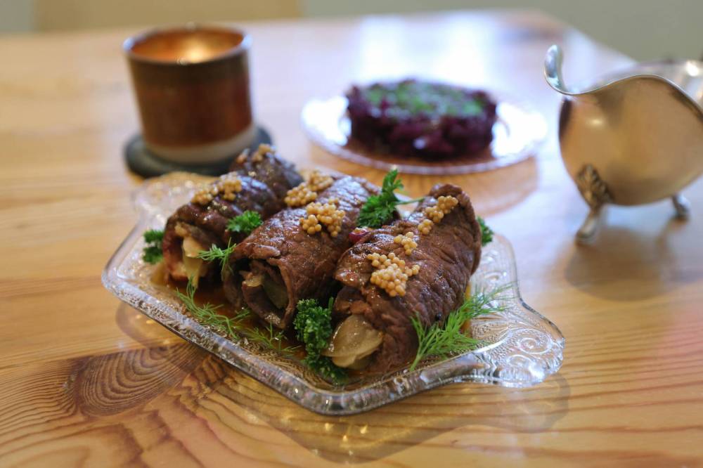 RUTH BONNEVILLE / WINNIPEG FREE PRESS Deer + Almond chef Kristopher Kurus’s rotkohl and rouladen.