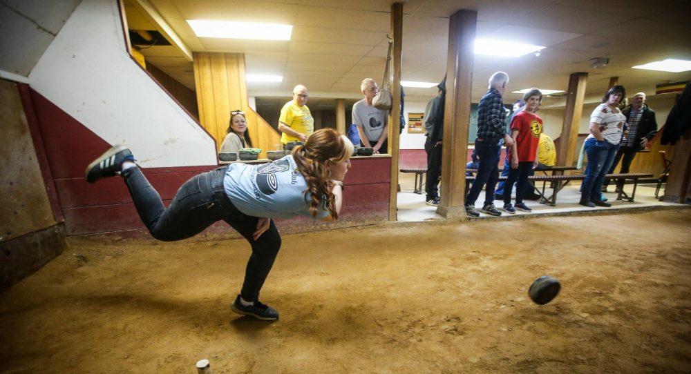 Josh explains that there are three positions in Belgian bowling: lead, second and shooter. Just don’t let those designations trick you, his sister points out. Unlike curling, where teammates deliver rocks in the same order, end after end, that isn’t the case with rolle bolle. Any of the three can shoot at any time, depending on the situation, she says.