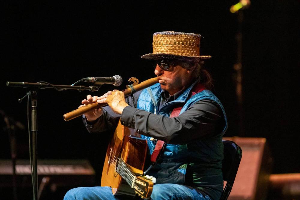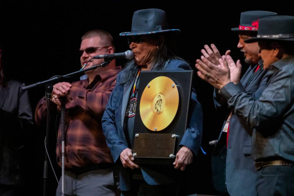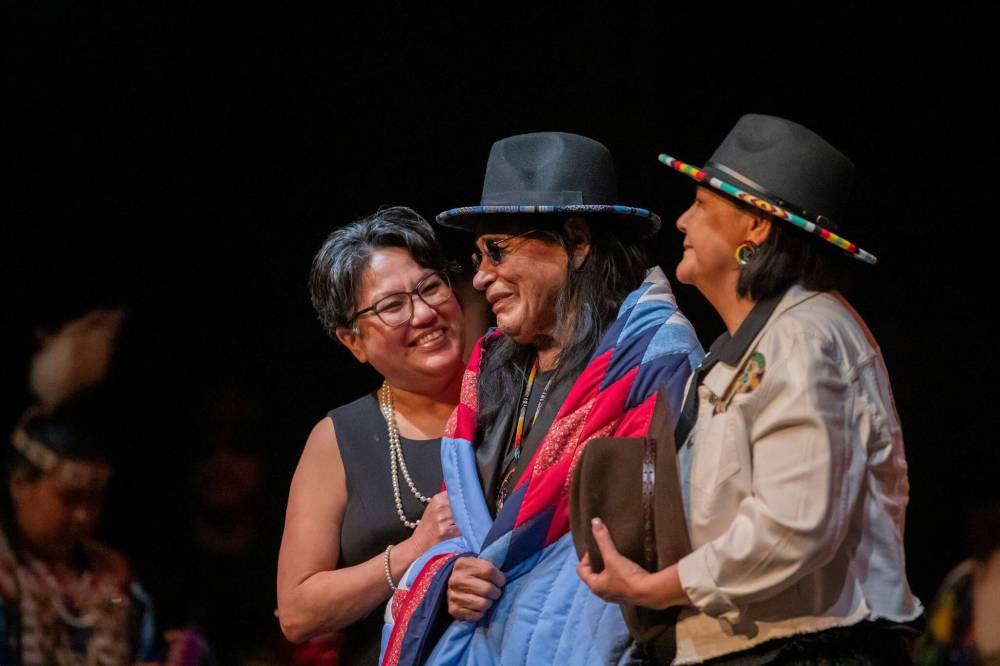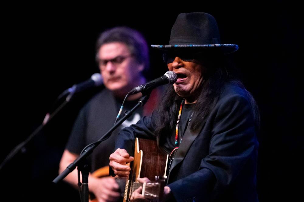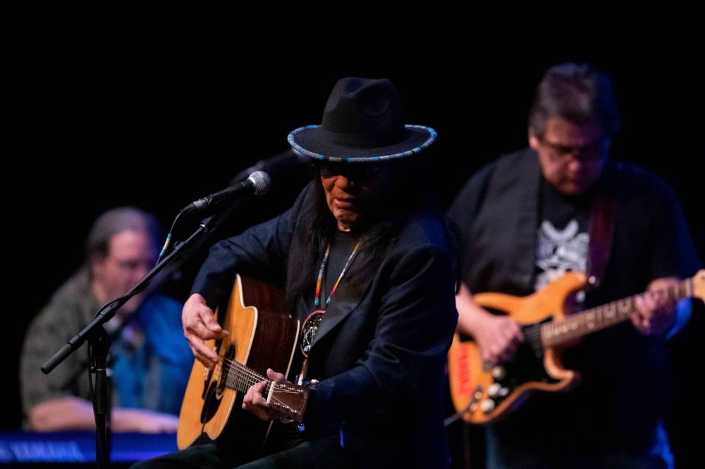 Another longtime friend, Keith Secola, an Anishinaabe folk singer and scholar from Minnesota, opened the show with an Anishinaabe song set to the melody of Woody Guthrie’s This Land Is Your Land.