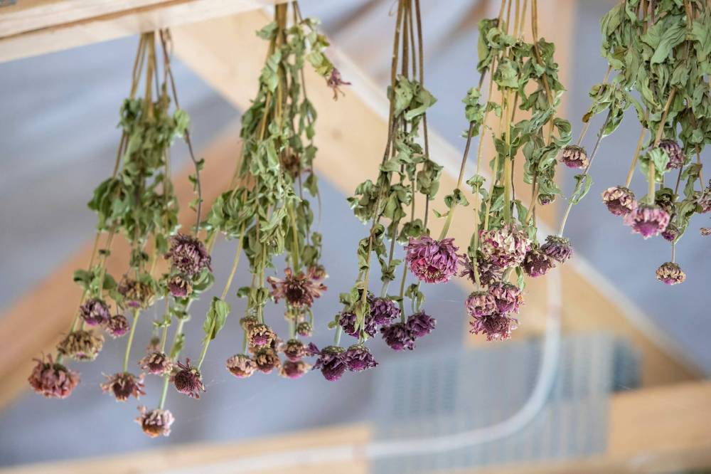 BROOK JONES / FREE PRESS Dried flowers hang from the rafters in Still’s studio.