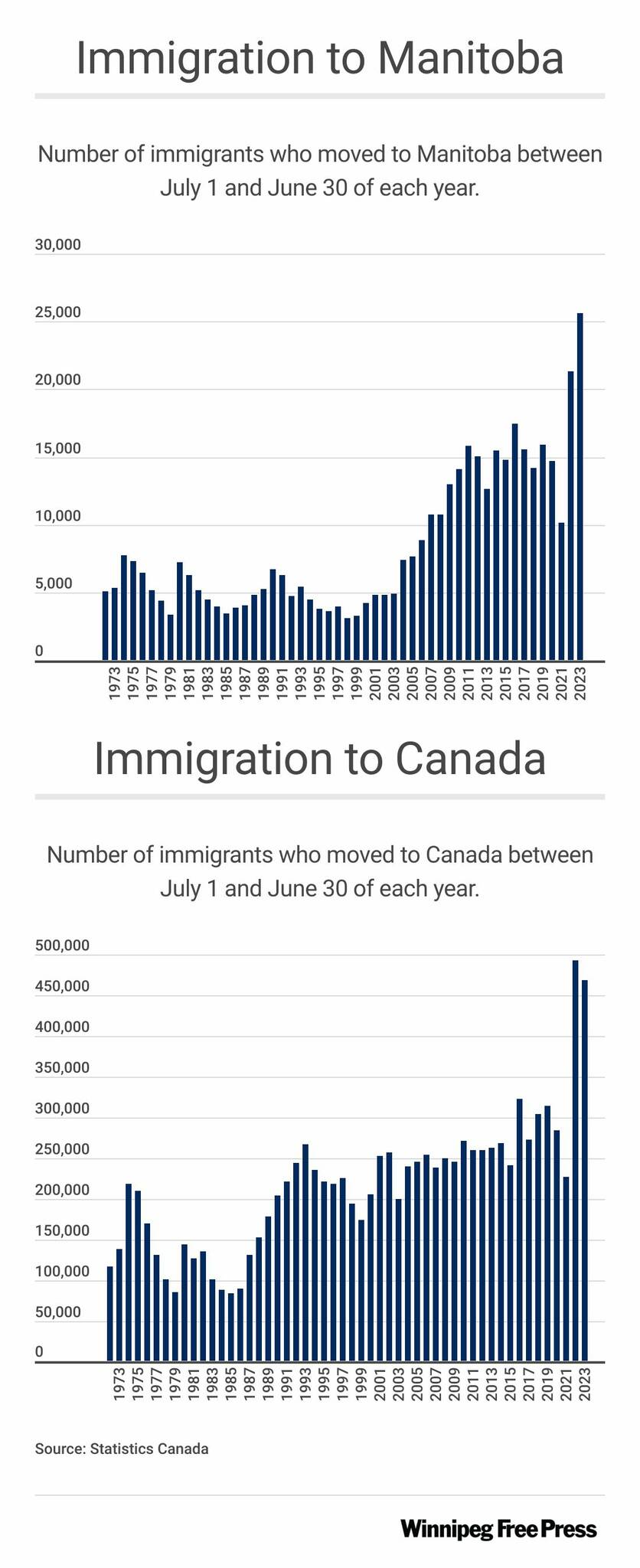 Habibulla and Tauqeer are among the thousands of newcomers Manitoba has attracted in the last decade, with the province averaging about 15,000 each year. Nationally, numbers soared as Prime Minister Justin Trudeau championed immigration to fuel economic growth and address labour shortages.