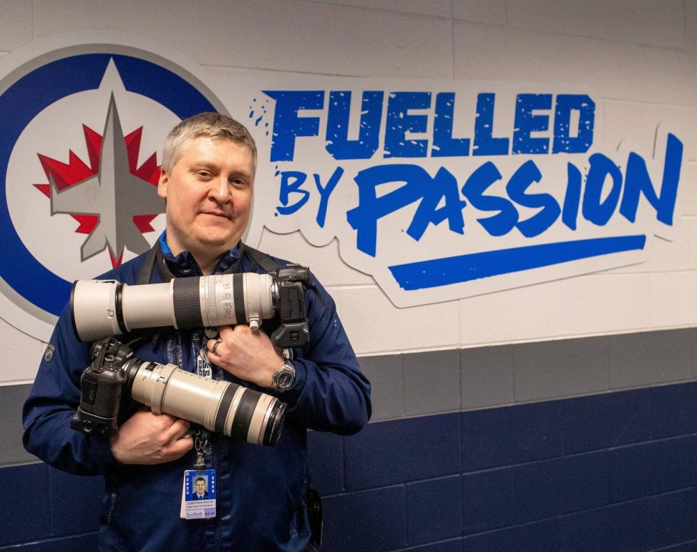 As the National Hockey League club’s official photographer, Kozub couldn’t ask for a more favourable backdrop when he’s documenting the on-ice action than 15,000-plus rabid Jets fans, bedecked head-to-toe in their finest whites.