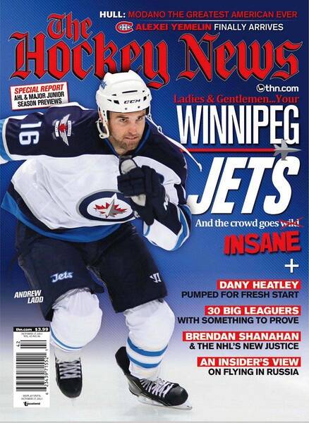 Well, not only did the Jets get in touch at the last moment, a photograph Kozub took of then-captain Andrew Ladd skating onto the ice for the team’s first exhibition game on Sept. 20 — two days after he lost his job — landed on the cover of The Hockey News two weeks later, along with the headline Ladies and gentlemen, your Winnipeg Jets.