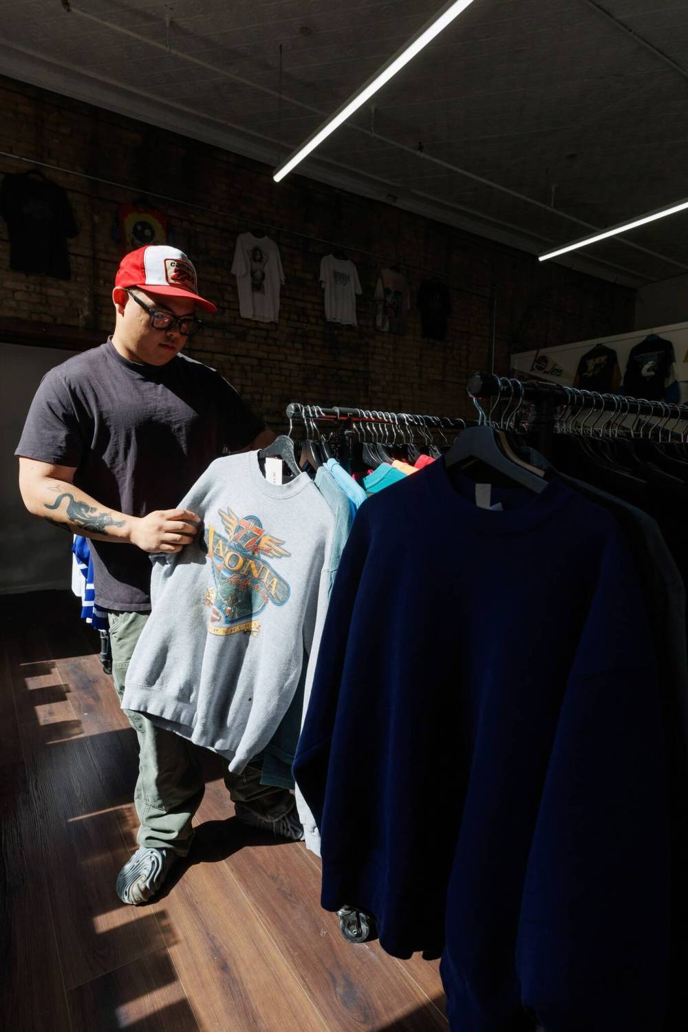 “I think I got two hours sleep last night, tops,” Delera said that morning, standing in the centre of his 1,500-square-foot premises, an attractive space boasting floor-to-ceiling windows and exposed brick walls jam-packed with a wide array of pre-worn attire, such as band T-shirts, sports jerseys and NASCAR jackets. Oh, and a life-size cardboard standup of Chicago Bulls legend Michael Jordan.