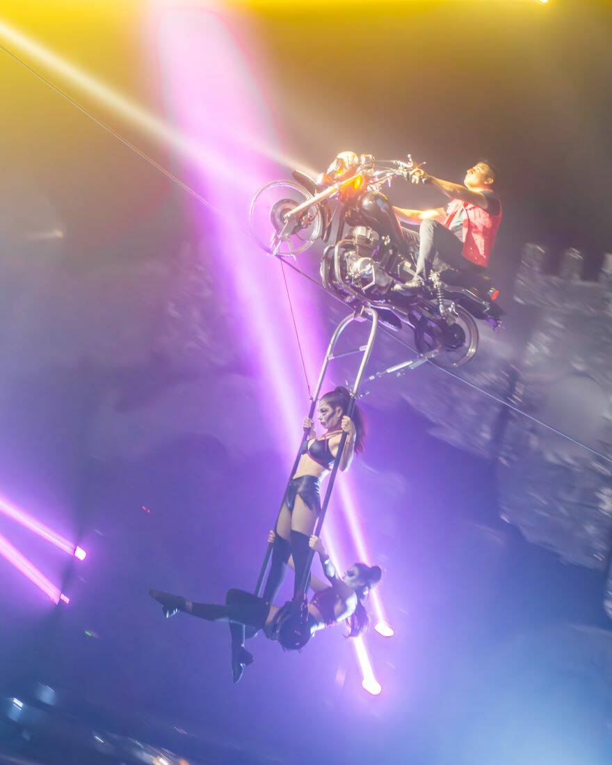 Paranormal Cirque features a wide array of performances, including the Wheel of Death, mystifying magic acts, motorcycles on wires, and other circus arts performed by a cast of international artists.