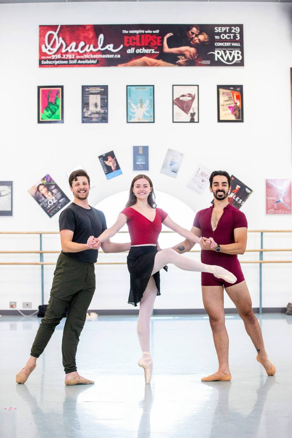 MIKAELA MACKENZIE / FREE PRESS Royal Winnipeg Ballet dancers Josh Hidson (left), Amanda Solheim and Stephan Azulay have all received promotions within the company.