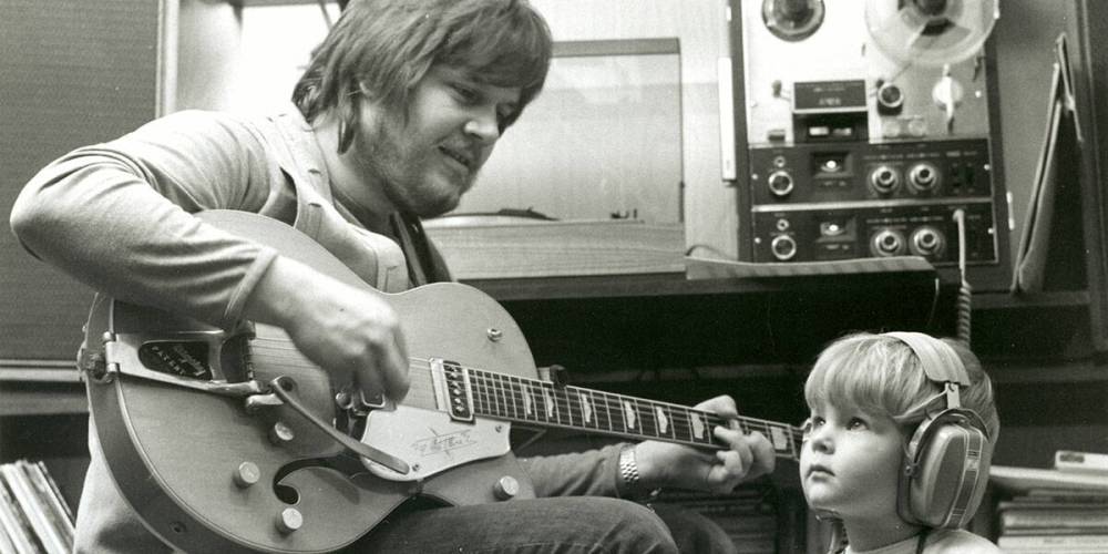 Randy Bachman in the studio with his son Tal in the early 1970s