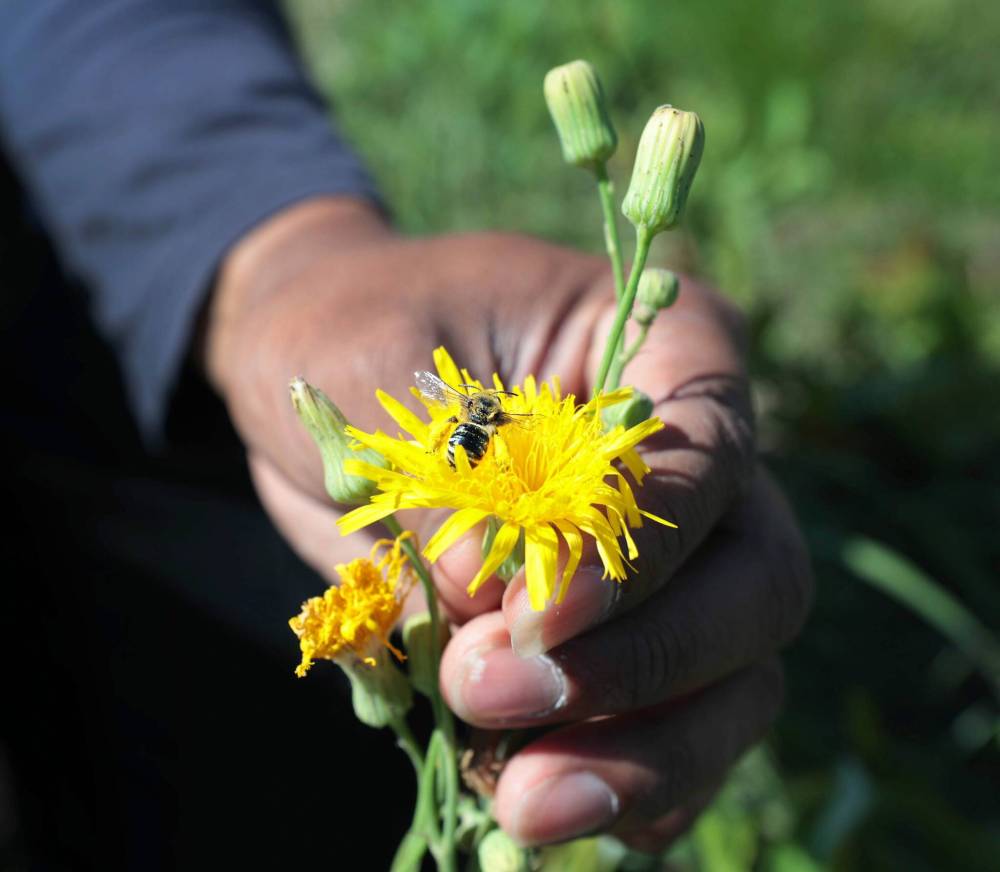Ruth Bonneville / Free Press Hettiarachchi shows off a Melissodes bee.