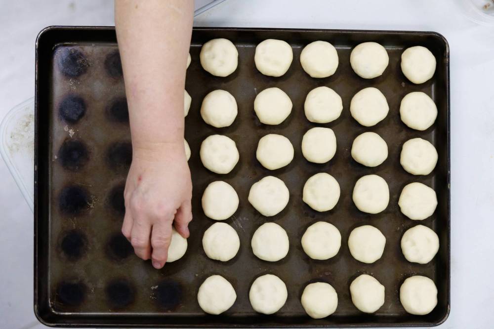 “And because I can pinch buns with my eyes closed pretty much, I spend a lot of time listening to audiobooks or watching my shows when I’m here,” she says, getting up to place three-dozen freshly rolled buns into a pre-heated oven. “What’s also been great is that all of my children have worked for me at some point, and it’s been awesome that the business allows me to give them money without giving them money, if you know what I mean.”