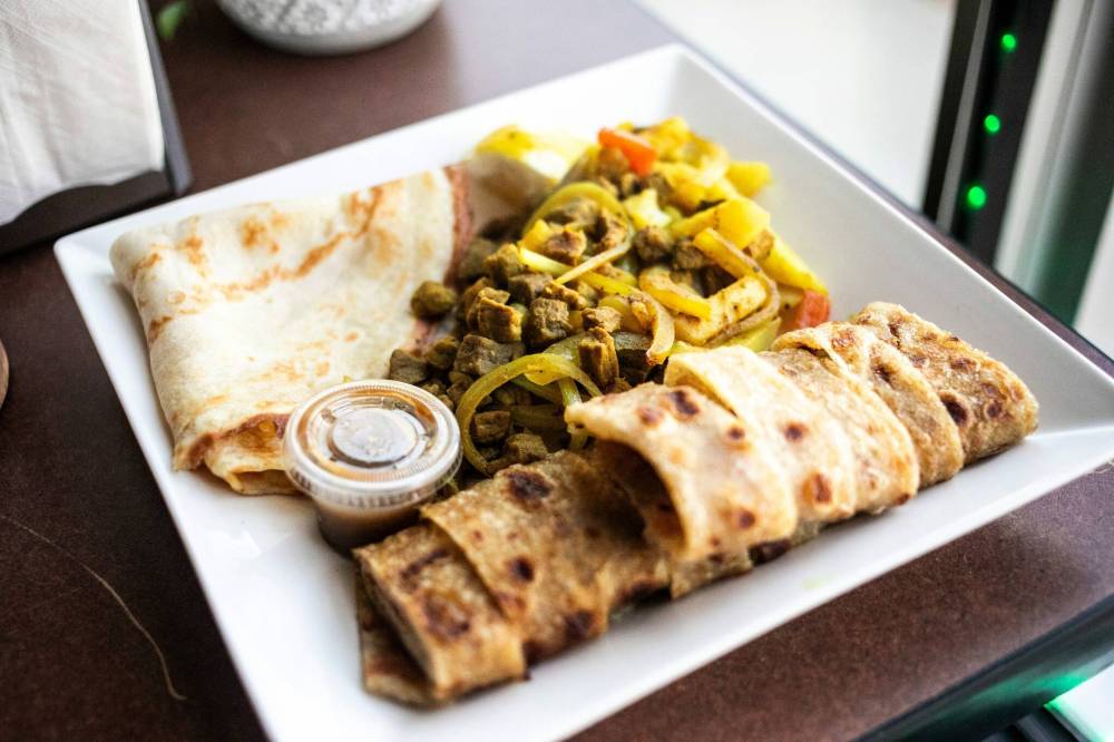 The Lamb Shank with Rice ($22) is a hearty meal. The bone-in shank is slow-roasted, tender and served with a small lettuce salad, a generous pile of rice spiced with warm aromatics and a banana — a traditional pairing according to owner Sucad Mahamed. The Beef Suqaar Stew ($15.99) comes with cubes of beef cooked with a flavourful, savoury mixture of potato, onion and peppers. The dish is served with either anjera — a sweet, crepe-like side — or pan-fried chapati, which has a nice chew.