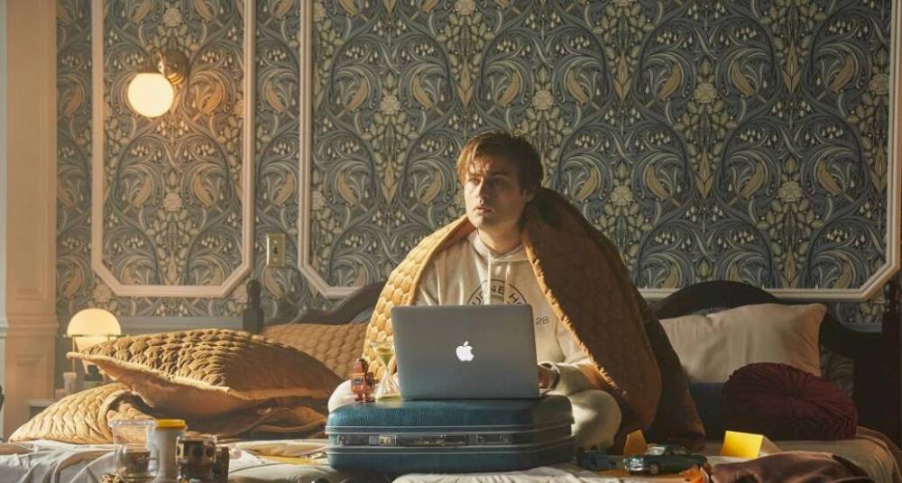 Visually, there are several nods to Wes Anderson, including old-money interiors, a gorgeous aquamarine typewriter and a natty brown corduroy suit.
