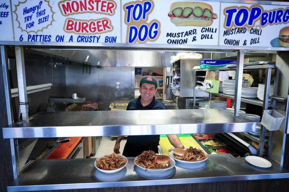 Before assuming the reins, Athanasiadis reassured the Scourases he didn’t intend to change a thing — not the name, not the red-and-white exterior, not the wall of fame featuring headshots of famous types who’ve chowed down there through the years (Prime Minister Justin Trudeau! Professional wrestler Maurice “Mad Dog” Vachon!!), and certainly not the Monster Burger, a six-patty behemoth topped with cheese, mustard, chili sauce, onions, lettuce, tomatoes and dill pickle that has been a gut-busting staple there since Day 1.