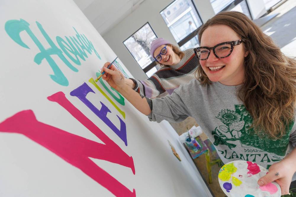 Artists Jill McGillivray (back) and Helga Jakobson’s Next Door Neighbour Studio opens later this month with the banner, ‘Howdy neighbour.’