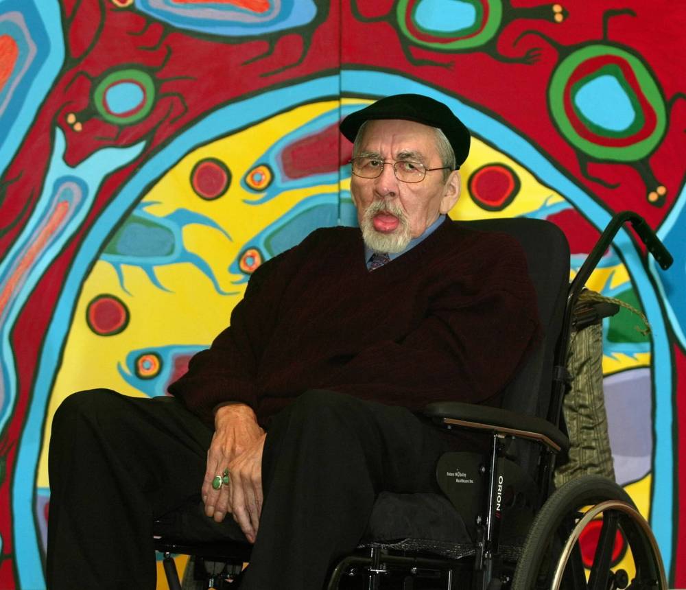 The art of the late Norval Morrisseau, here with Androgyny 1983, is the subject of Drew Hayden Taylor’s première The Undeniable Accusations of Red Cadmium Light.