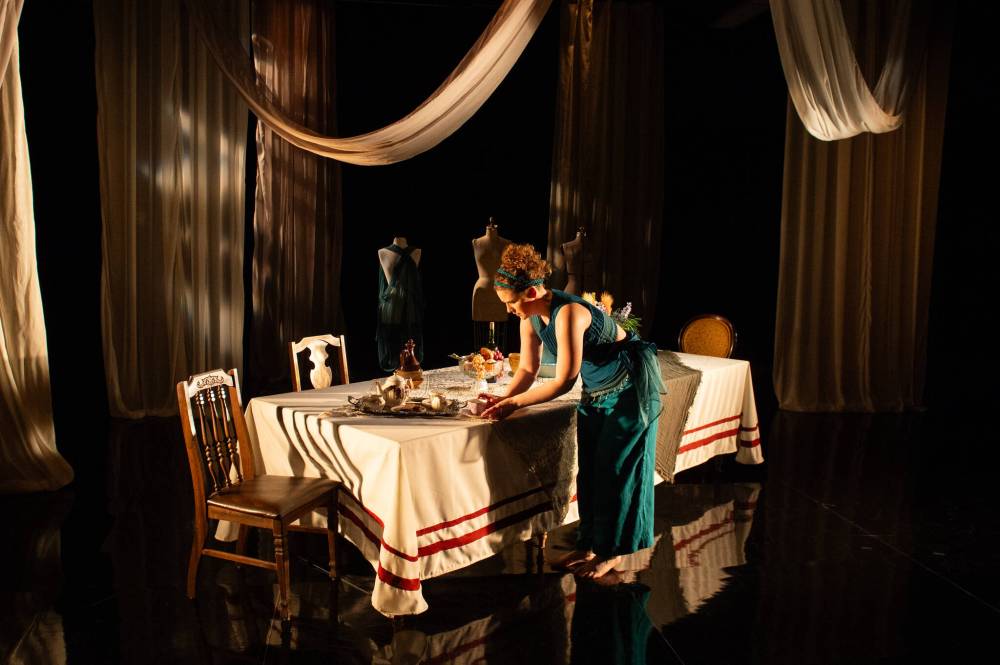Produced by Theatre Projects Manitoba and directed with a flawless sense of gravity by Suzie Martin, Prophecy begins before it starts with the haunting pluck of sound designer Natanielle Felicitas’s cello, an instrument whose silhouette mirrors the three headless, armless, faceless mannequins pinned behind set designer Kate George’s table spread.
