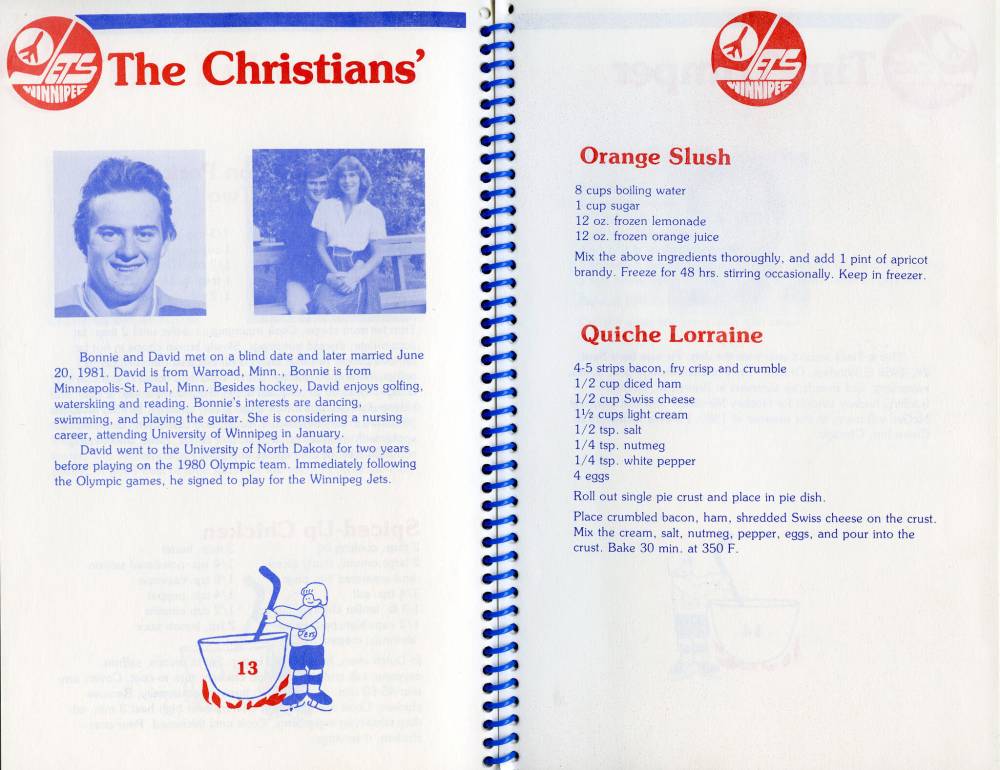 The Jets, however, did stay active in the off-season, according to write-ups in the cookbook, with Toronto-born Hawerchuk playing “all sports,” watching horse racing at Assiniboia Downs and spending time at the family cottage in Oshawa.