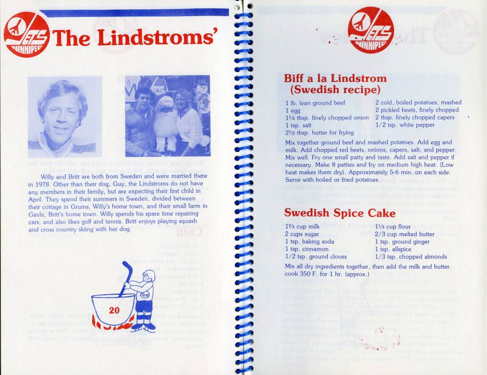 Biff a la Lindström isn’t an original family recipe from former right winger Willy Lindström, but rather a popular Swedish dish akin to a hamburger patty. Off-ice, Lindström spent his time golfing and repairing cars, while wife Britt enjoyed squash and cross-country skiing with the family’s dog, Guy.