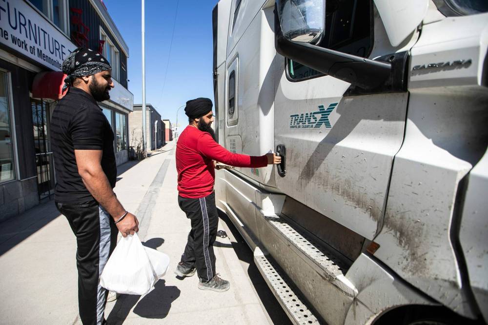 After grabbing their order of butter paneer and roti, the pair climbs into a white semi-truck parked out front and hit the road.