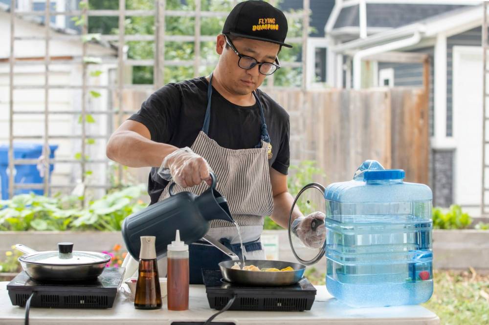 Super Flying Dumpling made its official debut in May 2024 at the South Osborne Farmers’ Market, at 725 Kylemore Ave. (Li intended to dub his biz Flying Dumpling, but ended up adding “Super” to his moniker after realizing a local restaurant chain goes by the name Flying Pizza.)