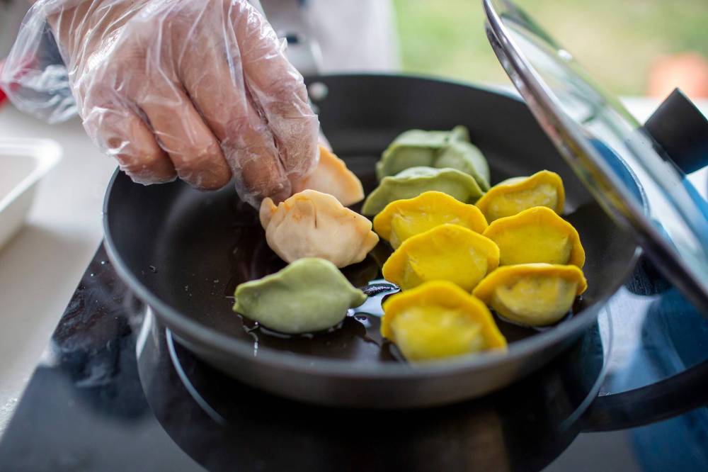 Besides serving up hot Chinese dumplings at local farmers’ markets, Aaron Li also sells frozen dumplings. Here are his directions for sizzling them up at home.